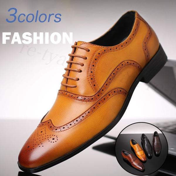 送料無料 ビジネスシューズ ウイングチップ 通気 疲れない 通気メンズ 防滑ソール歩きやすい 革靴 おしゃれ 4色
